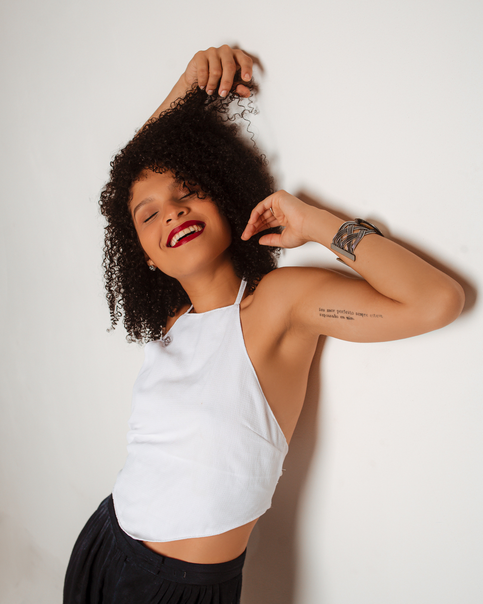 O direcionamento de poses, olhares, e tudo o que valoriza ainda mais sua beleza é feito por nossa equipe. Então você não precisa se preocupar ou já ter tido alguma experiência para fazer um ensaio assim.